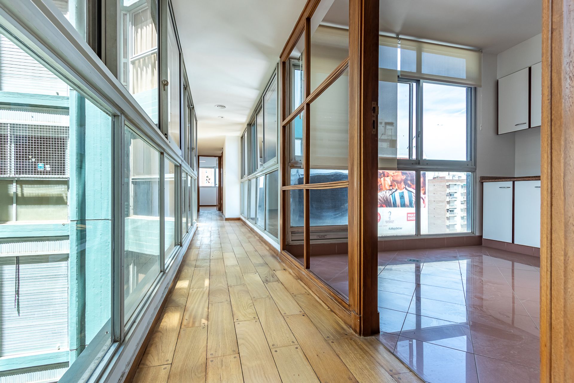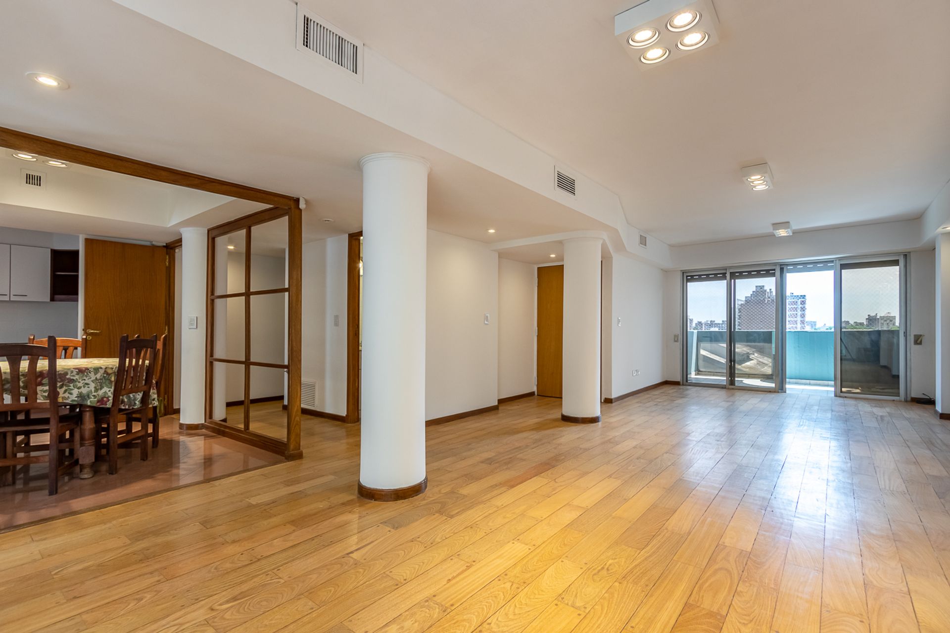 Amplio departamento con una distribución de planta acorde a una casa, ventilación cruzada, todos los ambientes amplios y ventilados, baño toilette, gran living-comedor al frente con piso de madera entarugada, salida a balcón y vista a Bv. Oroño.